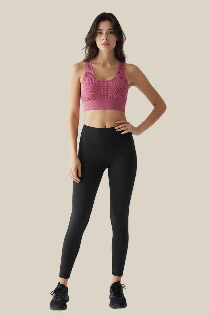 הטופ כולל תמיכה מובנית באזור החזה לשמירה על יציבות ונוחות, כך שתוכלי להתמקד בתנועה שלך ללא הפרעות.
