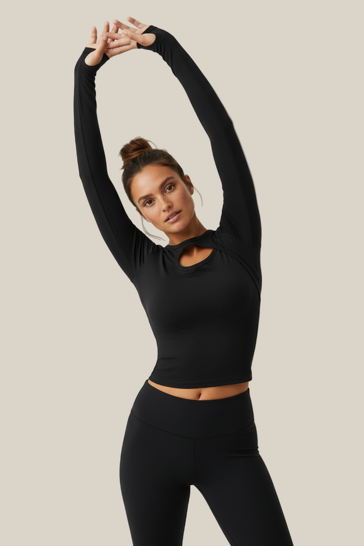 חולצת אימון עם עיצוב אסימטרי מהמם, גזרה צמודה ואלמנט שמוסיף טאץ’ אופנתי ומחטב. החולצה עשויה מבד פוליאסטר נושם, אלסטי ורך שנמתח עם הגוף ומאפשר תנועה חופשית בכל תרגיל. הגזרה הצמודה מחזיקה ומחטבת, והעיצוב עם החיתוכים המדויקים מעניק מראה יוקרתי ועדכני שמתאים גם ליציאה, לאימון וגם ליום יום.