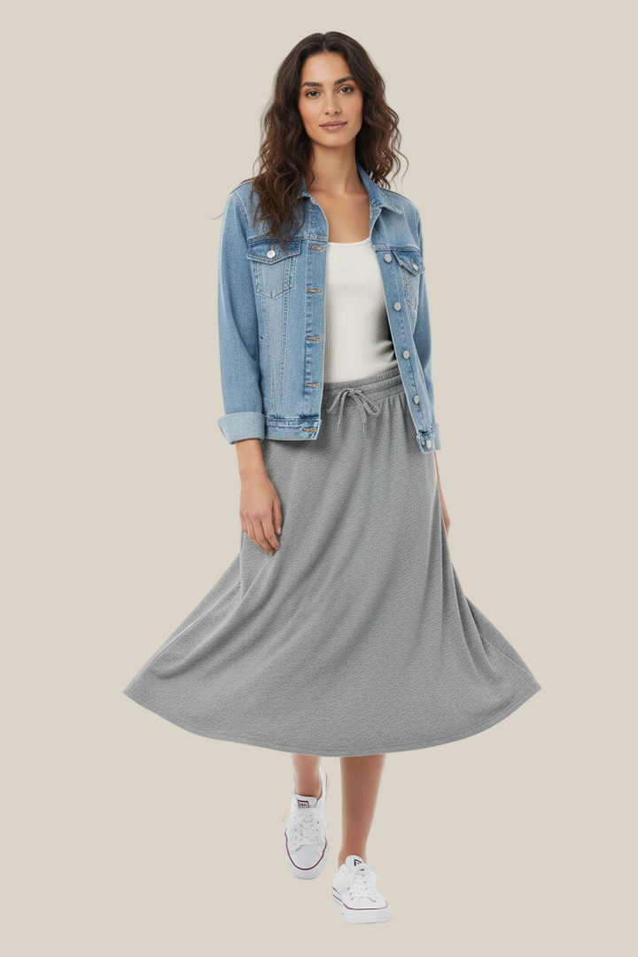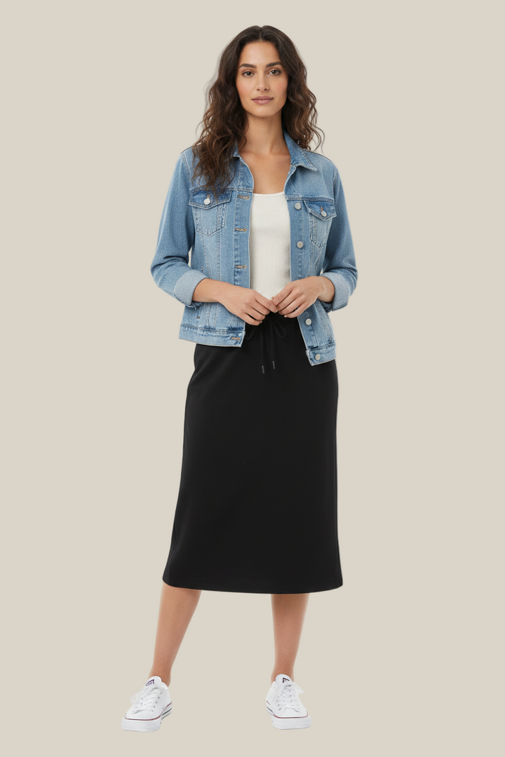 חצאית בייסיק מושלמת לאימון וליום-יום! בעיצוב מחמיא וחדשני שמשלב נוחות, סטייל ופונקציונליות. החצאית מגיעה בגזרת אורך חצי, מבד פוליאסטאר נושם וקליל שמתאים במיוחד למראה יומיומי נוח.