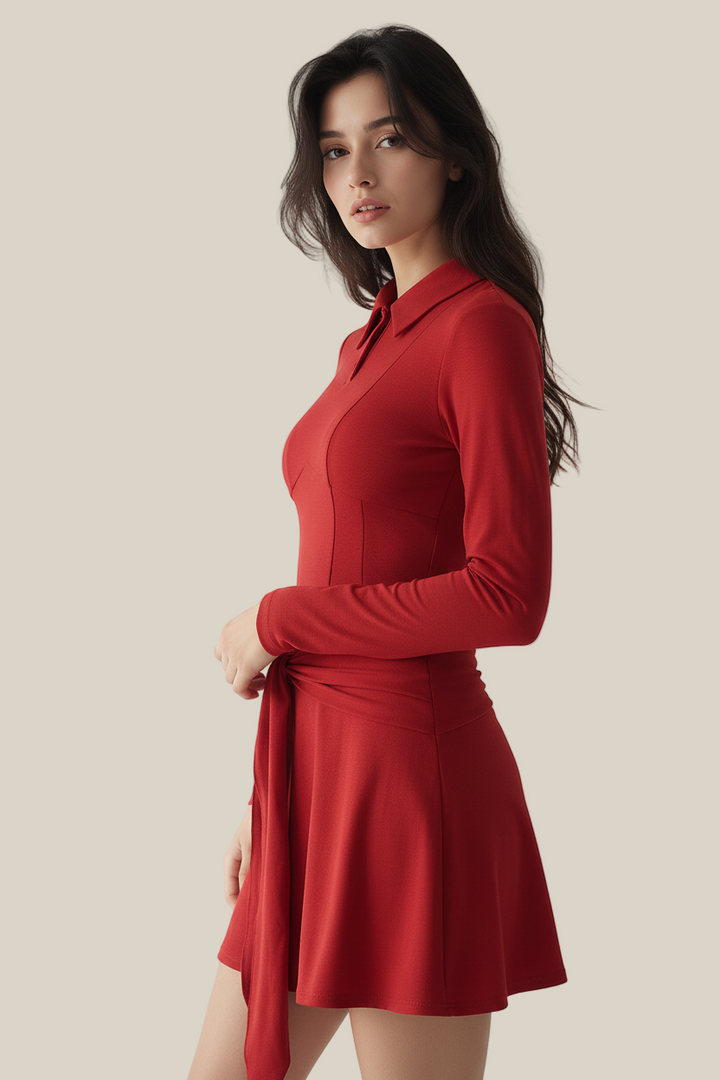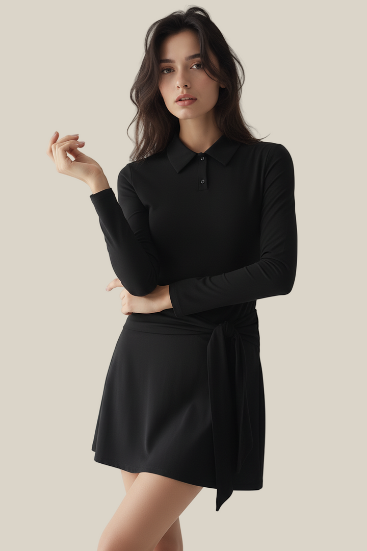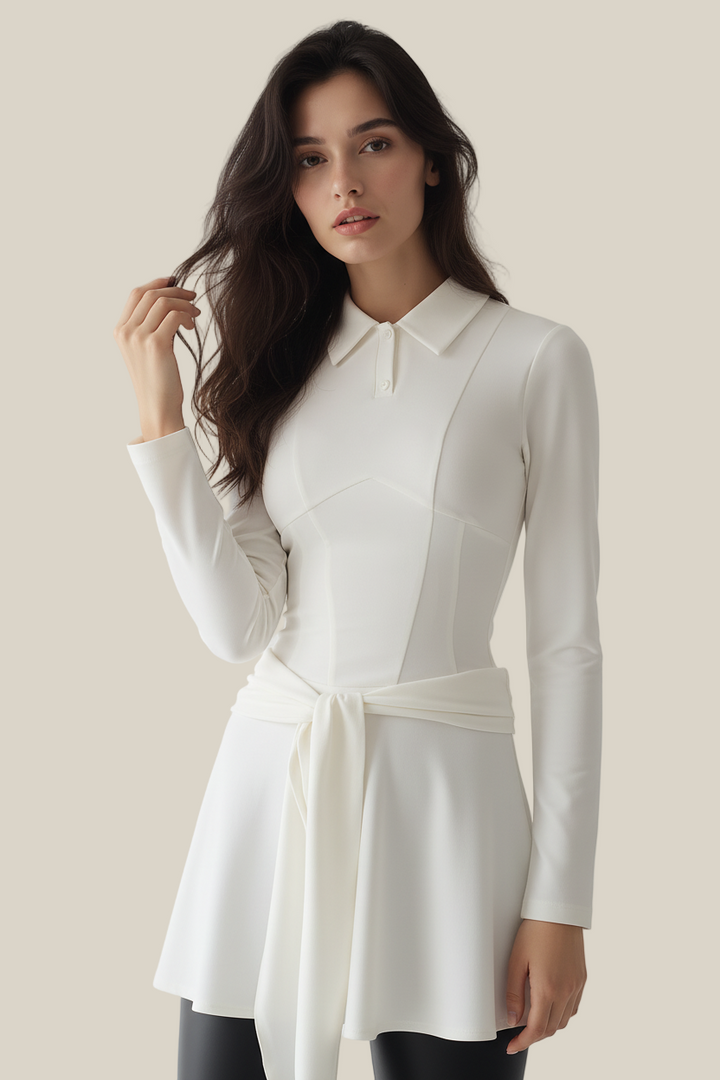 צווארון ה-Turn Down מעניק טאצ’ אלגנטי, והקשירה בחזה משדרגת את הלוק עם טוויסט נשי