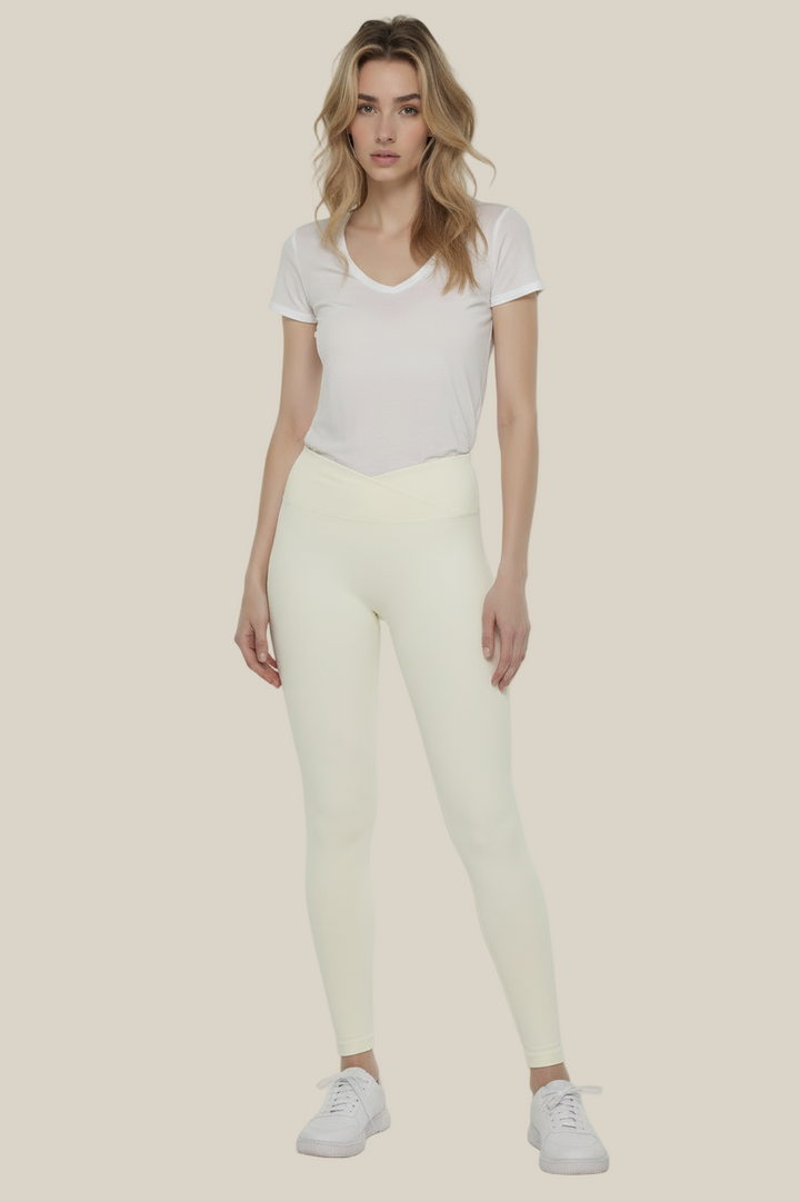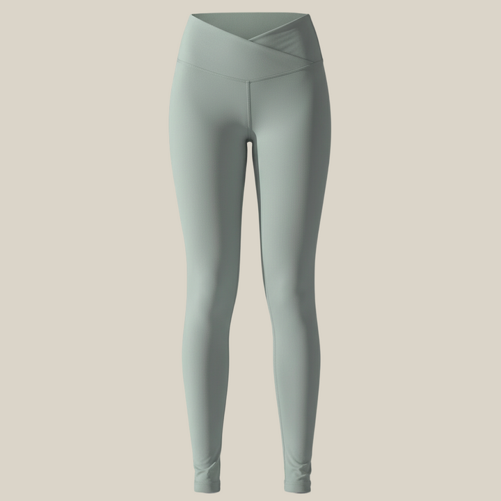 טייץ ספורט לנשים בעיצוב מותן מוצלבת המעניק תמיכה נהדרת ומראה מחמיא במיוחד לאזור הבטן. הגזרה הגבוהה אוספת בעדינות ומדגישה קווי גוף טבעיים, יחד עם אפקט הרמה לישבן