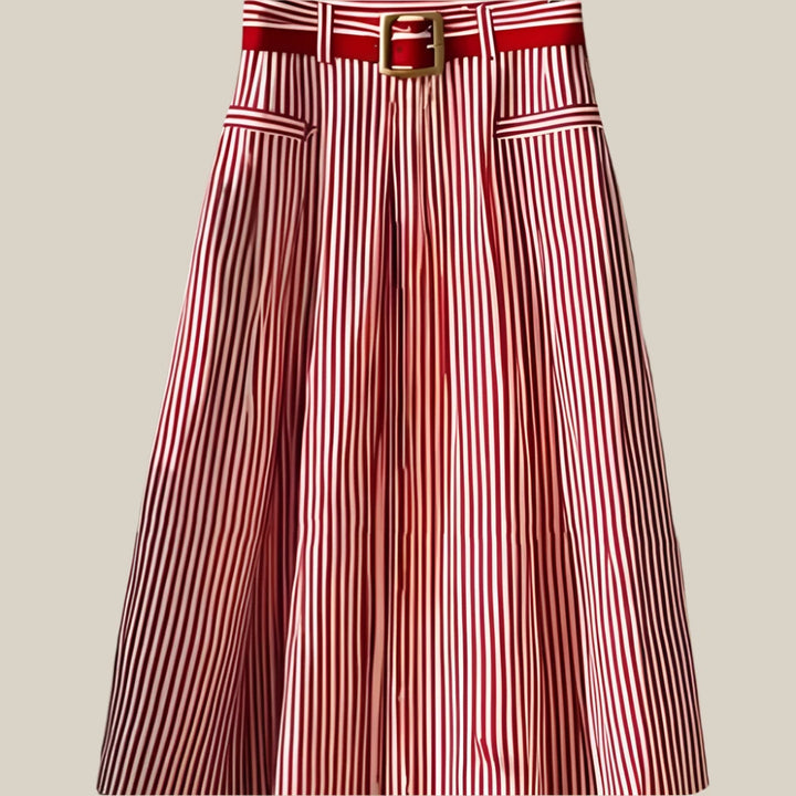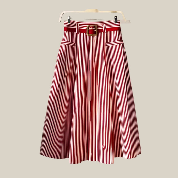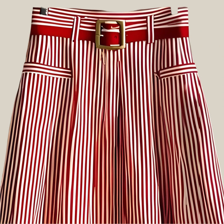 שלבי בין שיק פריזאי לקלילות קיצית עם חצאית הוינטאג' הרומנטית עם הדפס פסים אלגנטי, גזרת מידי קלאסית ומותן גבוה שמחמיא לגוף – זו החצאית שתשדרג כל דייט או בילוי קיצי