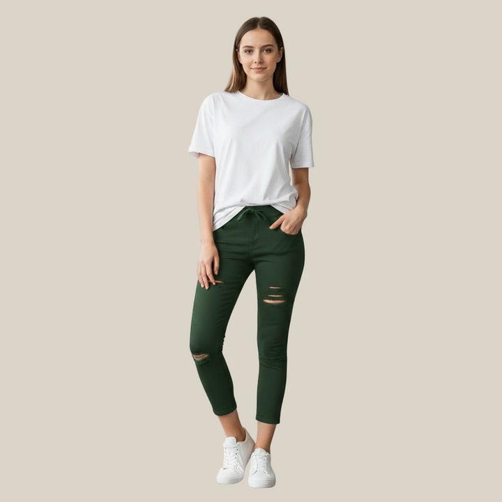 ג'ינס קרוע לנשים בעיצוב טרנדי ומחמיא במיוחד, עם בד (כותנה משולב עם פוליאסטר) גמיש ונעים שמעניק נוחות מלאה לאורך כל היום.